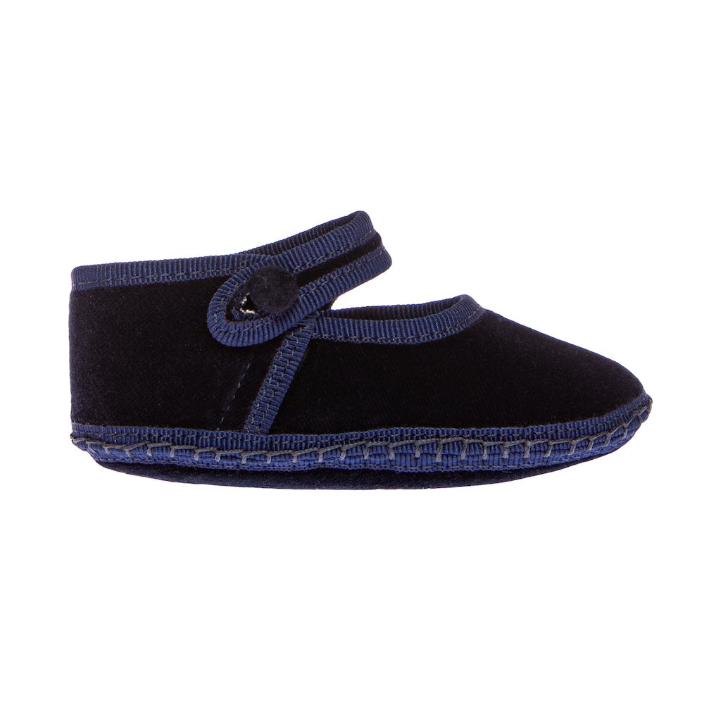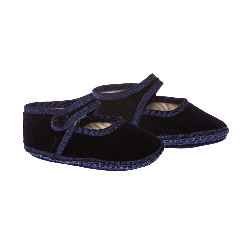 We absolutely love Vibi Venezia's handmade baby shoes. These are crafted from supple velvet, with velvet soles, and secure with a matching button. Polished enough for parties but too sweet not to wear everyday, these will be your little ones go to all fall and winter. These shoes are intended for pre-walkers.