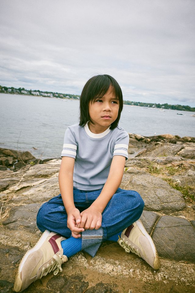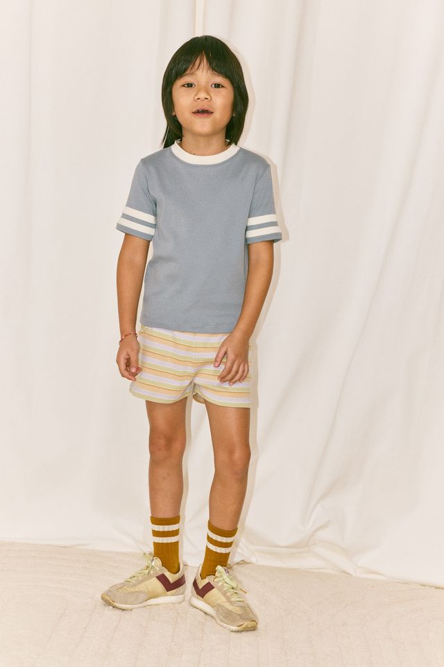 A classic slim-fit ringer tee in organic Pima cotton, with contrast appliqué striped sleeves and a contrast neckline.