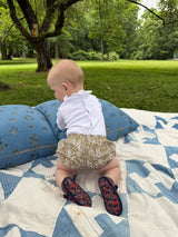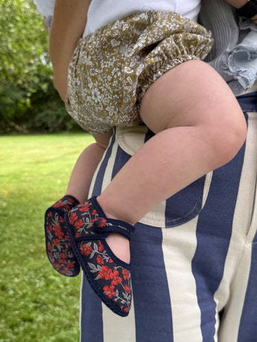 We’re delighted to partner once again with Vibi Venezia to create an exclusive pair of handmade baby shoes just for Willkie’s. Crafted in Venice from a beautiful printed floral fabric, each pair features soft fabric soles and a matching button closure.