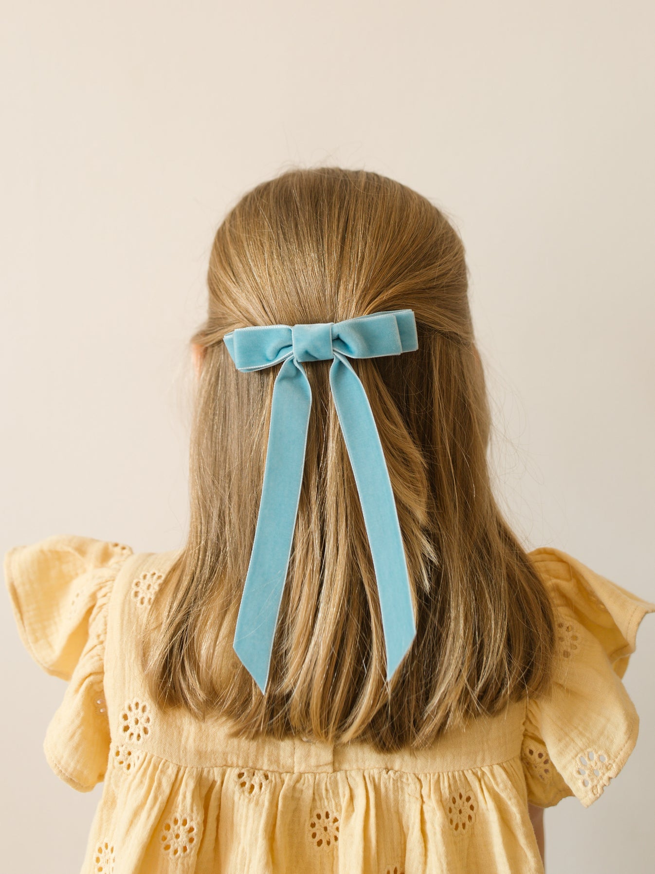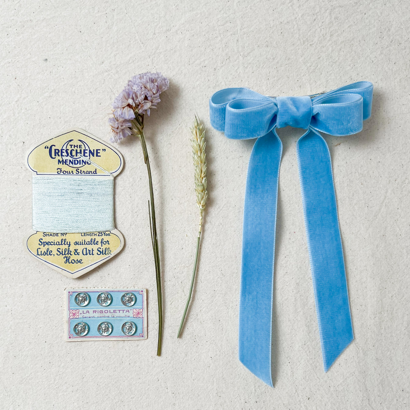 Our new Autumn Hair Bows are made in Runaround Retro's Somerset Studio from gorgeous velvet ribbon in a double bow design.