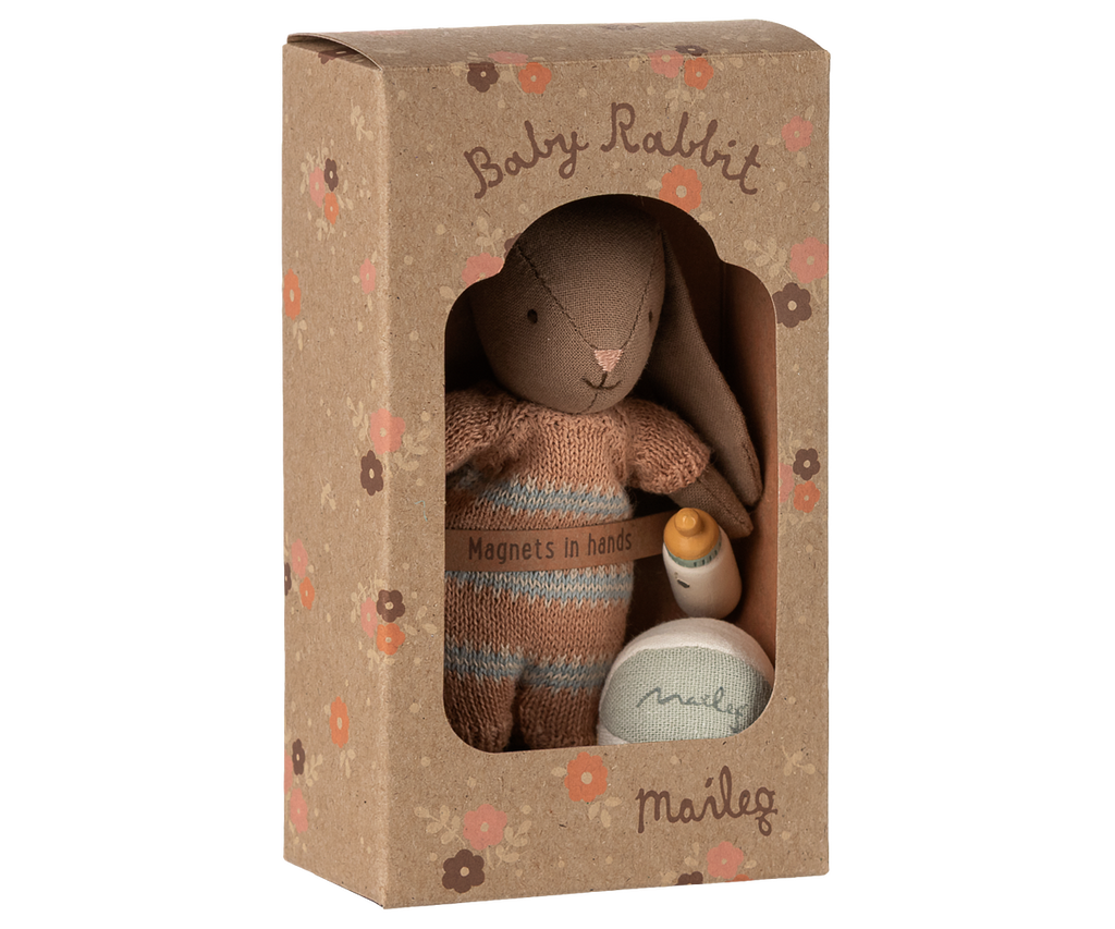 The perfect gift set to start hours of storytelling. It contains a small ball, a soft bunny in size micro with magnets in hands to hold the baby bottle. All fitted nicely together and a great start of any bunny collection.