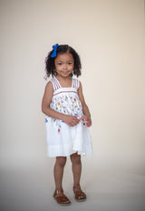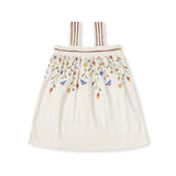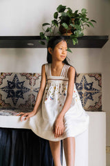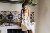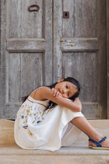 Introducing the Siena Dress in Opaline Silk, a timeless heirloom piece made to be cherished for generations. Crafted from hand-loomed 100% silk, it features delicate embroidered florals and intricate hand-embroidery along the straps and chest. Inspired by a dress the designer's mother made for her, Siena is perfect for spring celebrations, special memories, and meaningful milestones. Hand-loomed 100% silk, hand-embroidered floral details. Heirloom collection. Lined.
