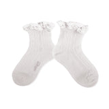Annette Lightweight Pointelle Socks with Lace Frill, Blanc Neige