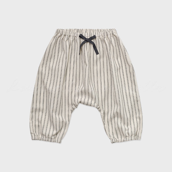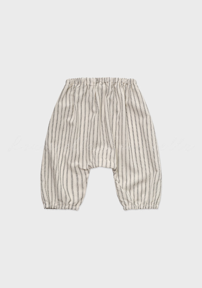 Louisiella’s baby girl pants feature a relaxed, vintage-inspired silhouette, perfect for comfortable everyday wear. A contrasting ribbon adds a playful, feminine accent, while the stripe patterns pairs effortlessly with simple tops to create a charming summer look. 100% cotton, made in Vietnam.