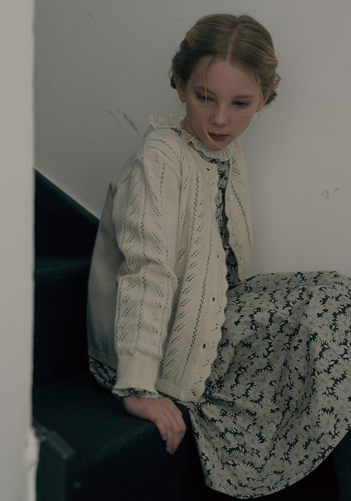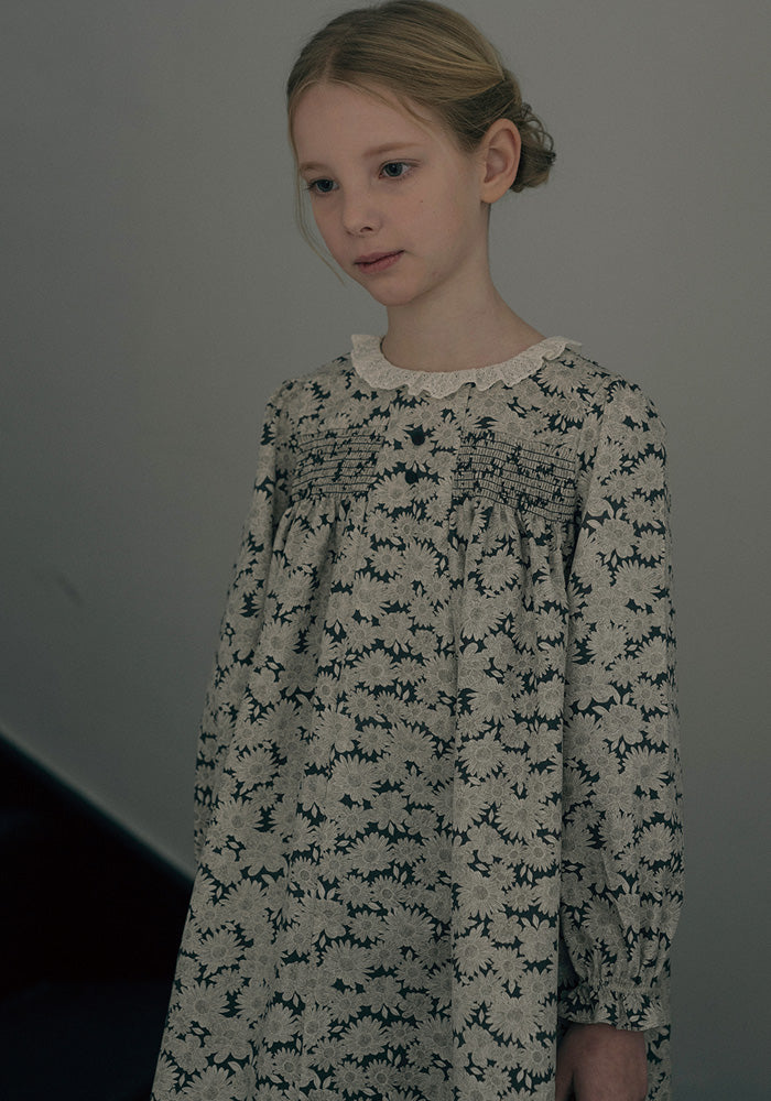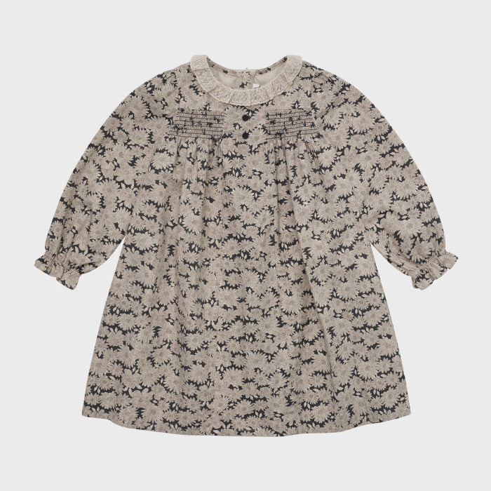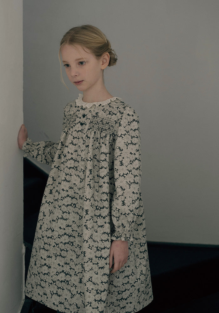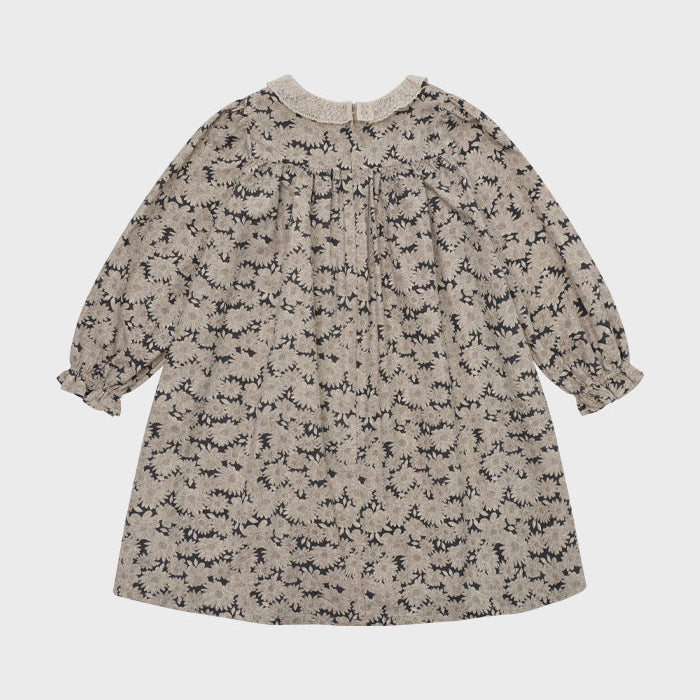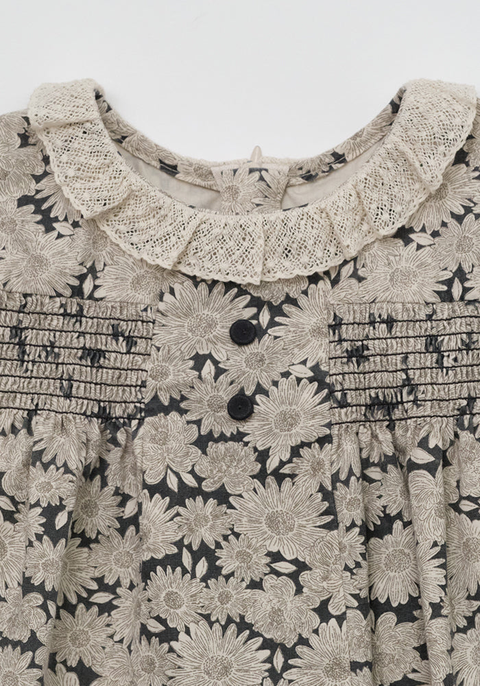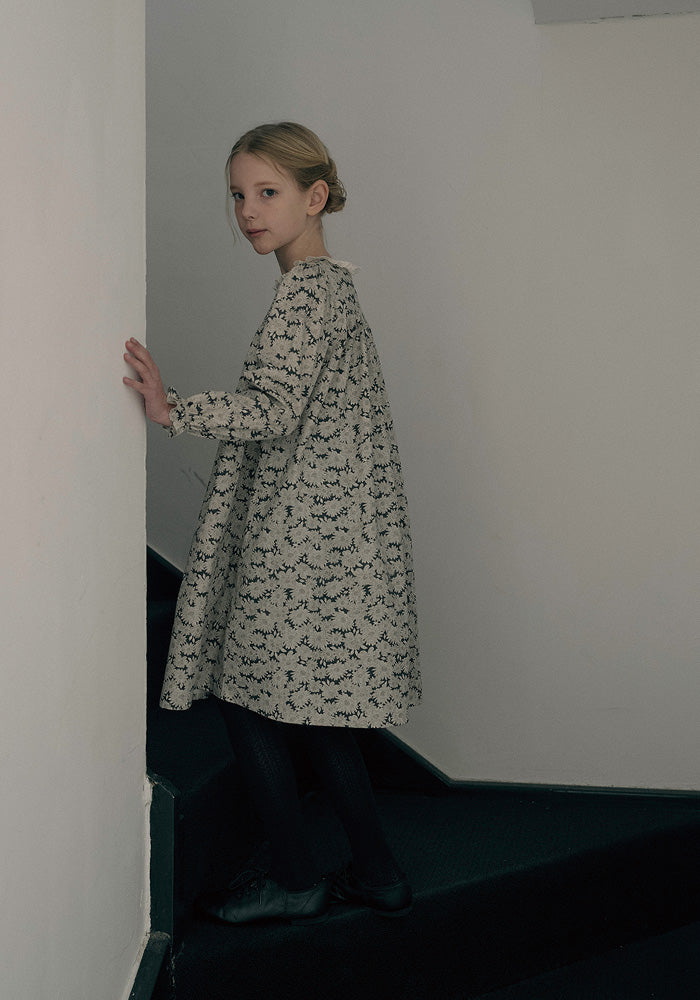 Lovely girl's dress in Louisiella's latest floral print, a delightful hallmark of the season. Contrast lace on the collar adds a touch of lightness to the print. We love it paired with ivory tights.