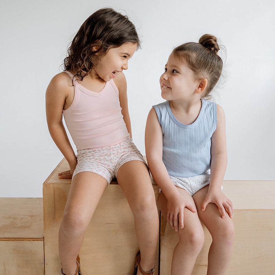 keep up with every spin, climb, and play-filled day. These soft, stretchy biker shorts feature a delicate picot stitch edge along the waistband and legs, adding a sweet touch to a practical staple. Perfect for layering under dresses or pairing with a favorite tee, they are versatile enough for every little adventure.