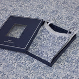Two undershirts made from soft single jersey cotton with a smooth, peach-like touch. Finished with fine silky ruffles along the neckline and back, this duo balances the poetic Toile de Rêve print with the purity of Milk frais.