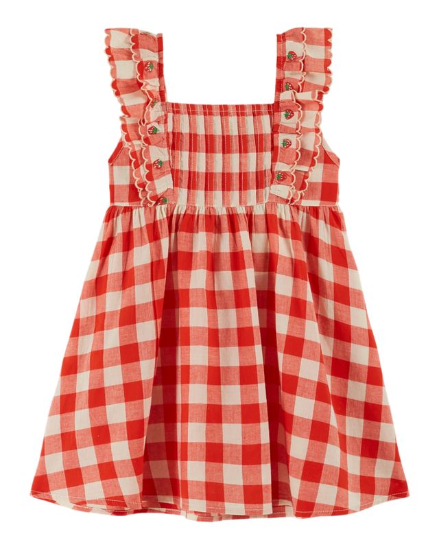 Strawberry Embroidered Dress, Vichy Rouge