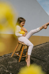 A kids PJ set in Sleepy Doe's lilac breton stripe. This classic silhouette with fitted cuffs is fuss free for a comfortable night's sleep.