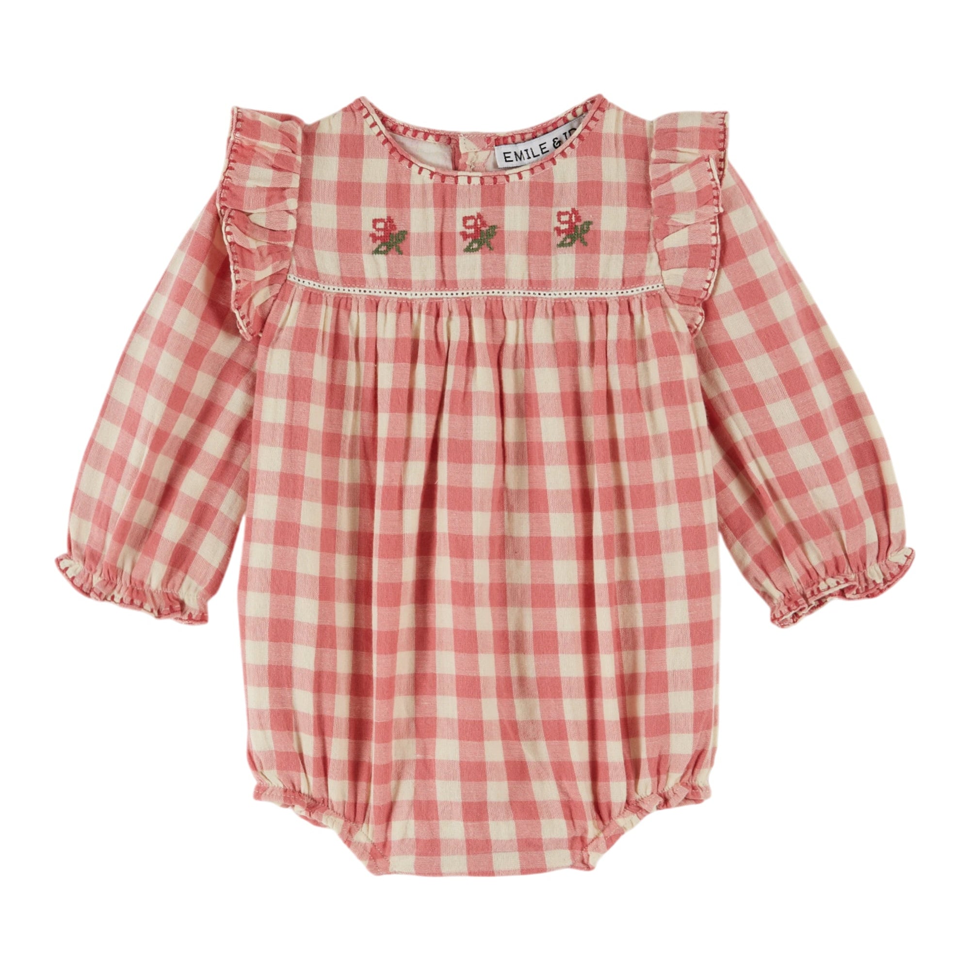 Embroidered Gauze Romper, Pink Gingham - 2y is backordered and will ship as soon as it is back in stock.