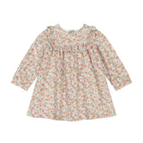 An adorable a-line party dress in in a crisp Italian cotton with ruffled detailing on the bodice and mother of pearl buttons on the cuffs and down the back. Younger siblings can match in our smocked blouse made of the same fabric.