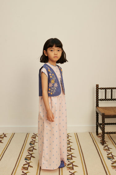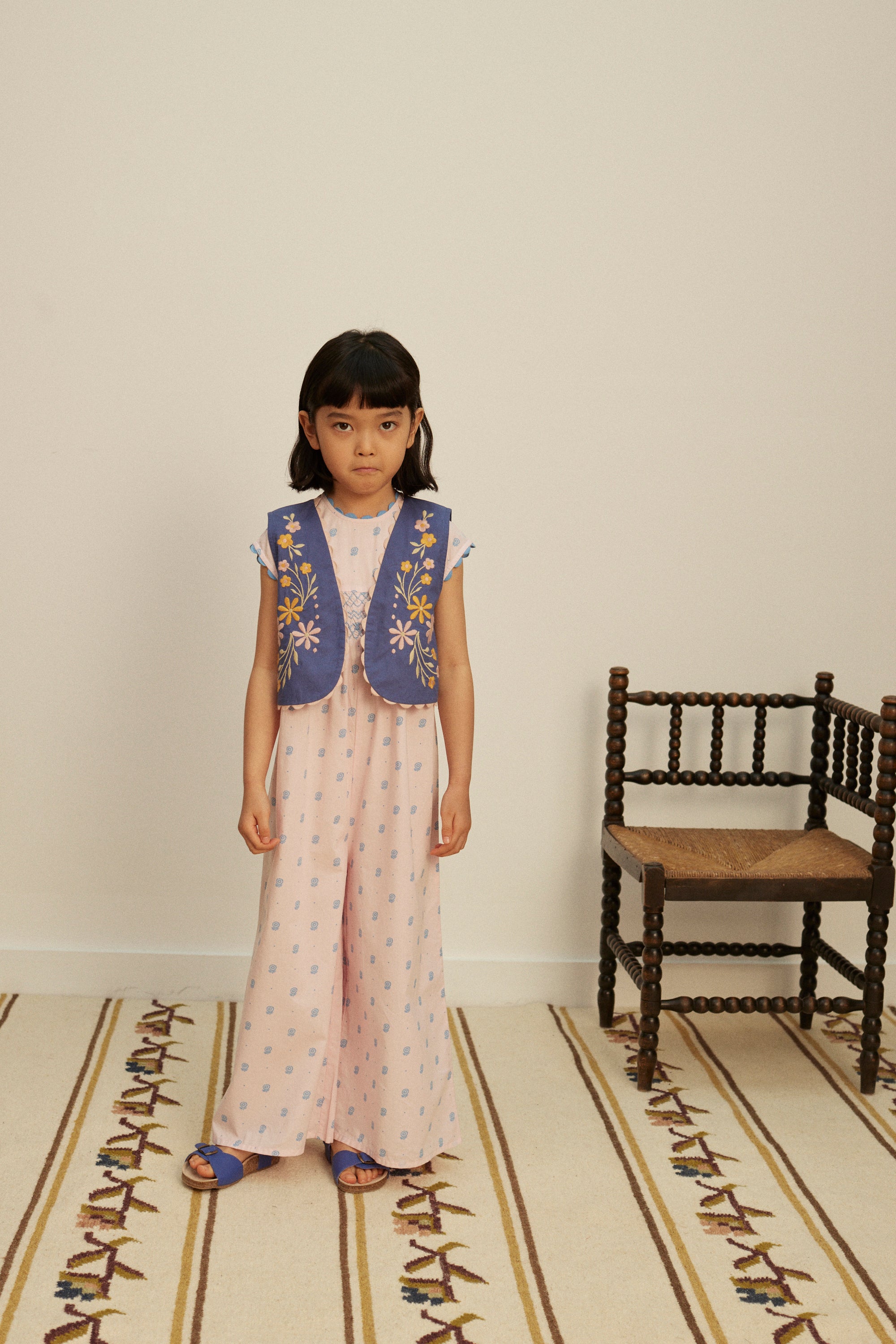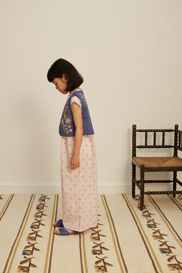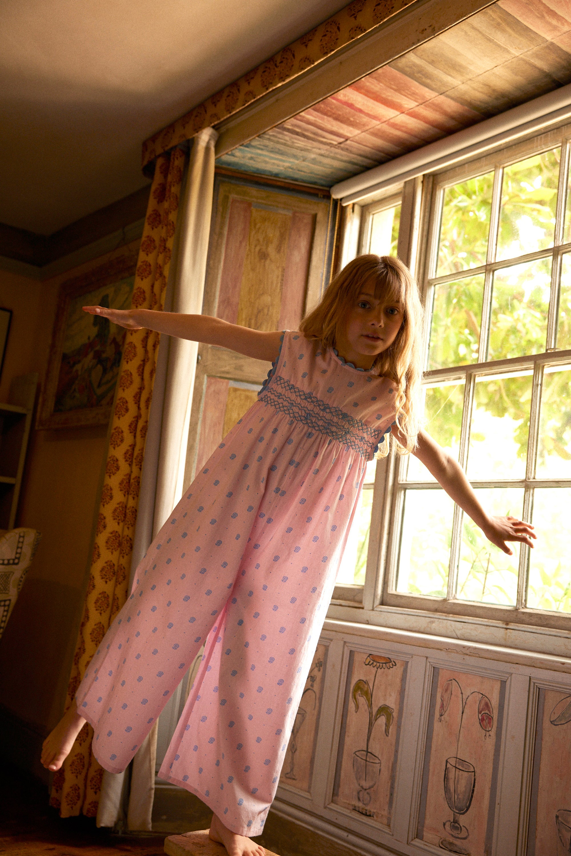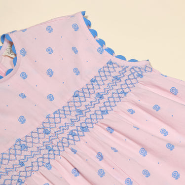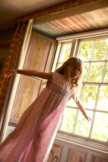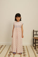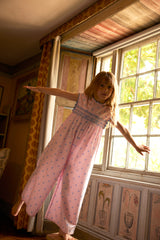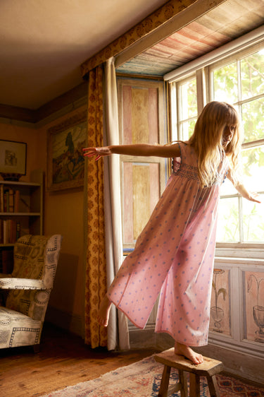 The stylish Gigi jumpsuit is crafted in Apolina's ‘studio calico’ print cotton. Featuring contrast hand smocking at chest and back, contrast scallop ric rac at neckline and armholes, and invisible zip closure at back. With an easy, wide leg silhouette, Gigi brings a relaxed summer mood perfect for holidays. We love her styled with sandals and our sunhats.