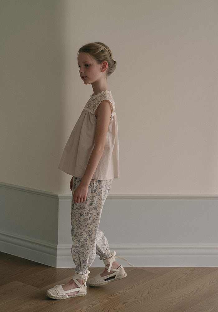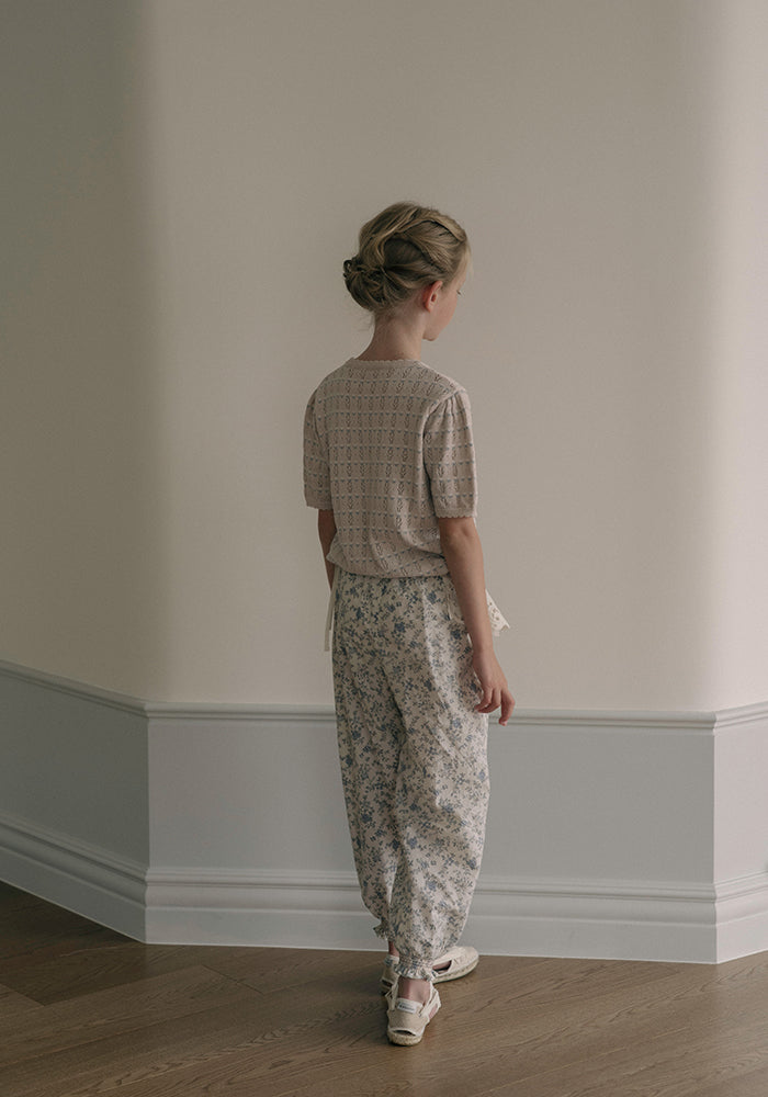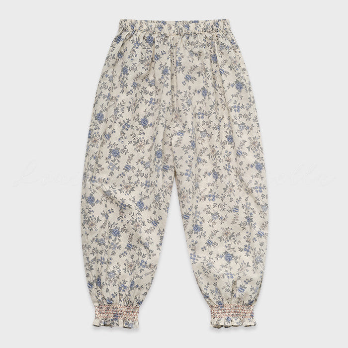 Louisiella’s jogger pants offer a relaxed fit designed for comfort during the spring and summer season. Featuring the brand’s signature romantic floral print and smocking details at the waist and cuffs, these pants blend ease and elegance, perfect for playtime or casual days with a charming twist. 100% cotton, made in Korea.