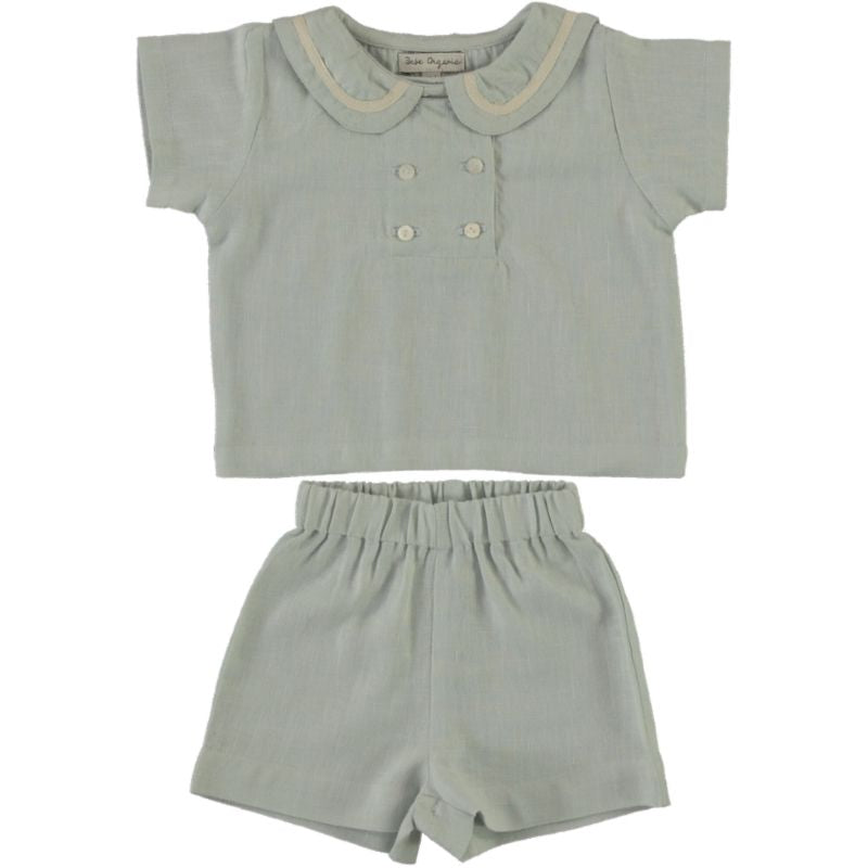 The easy and comfortable loose fit Malo baby set made of soft cotton fabric in a lovely cloud blue color. Features short sleeves, an adorable collar, and buttons at the front. The set comes with matching shorts. Perfect for summer days ahead.