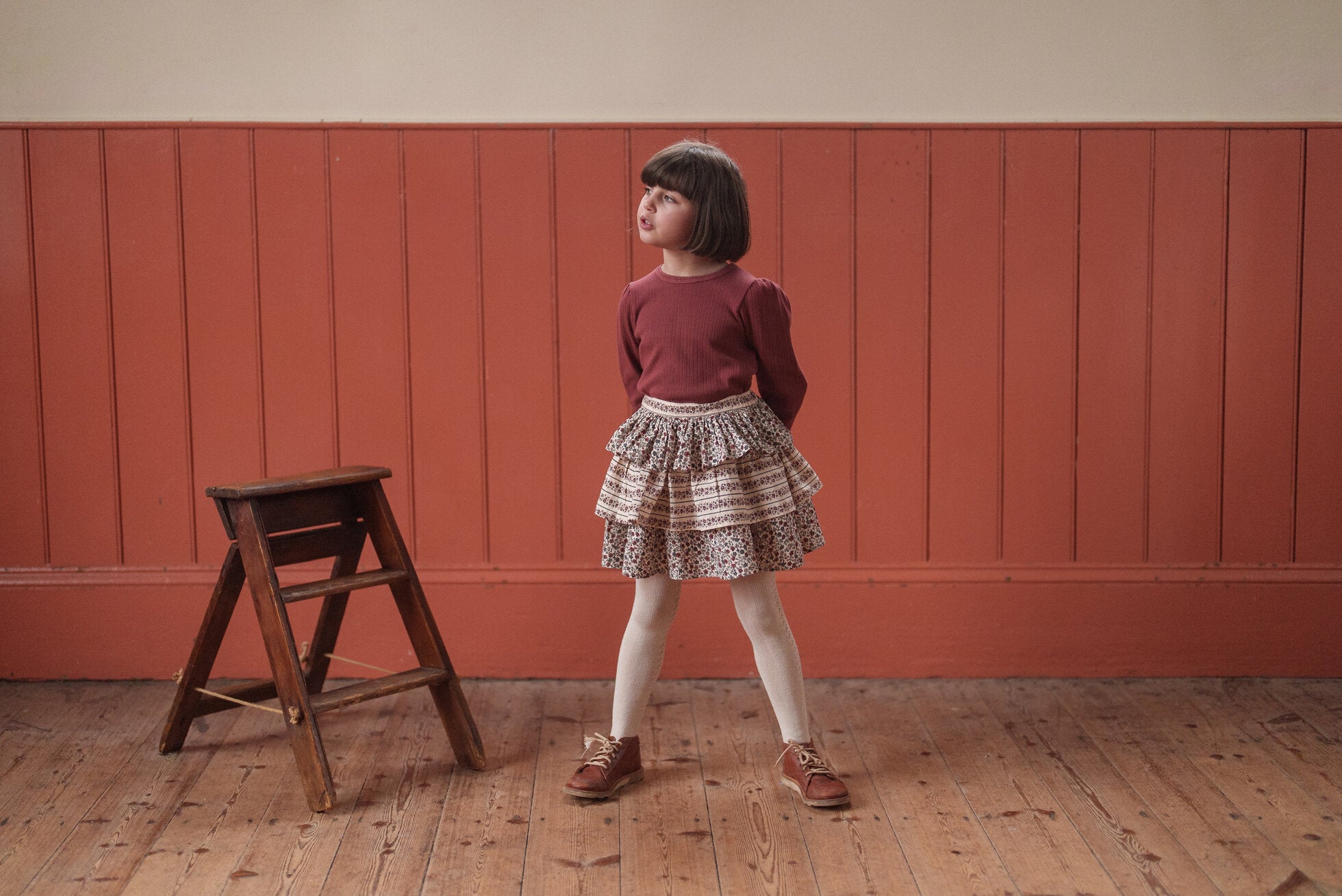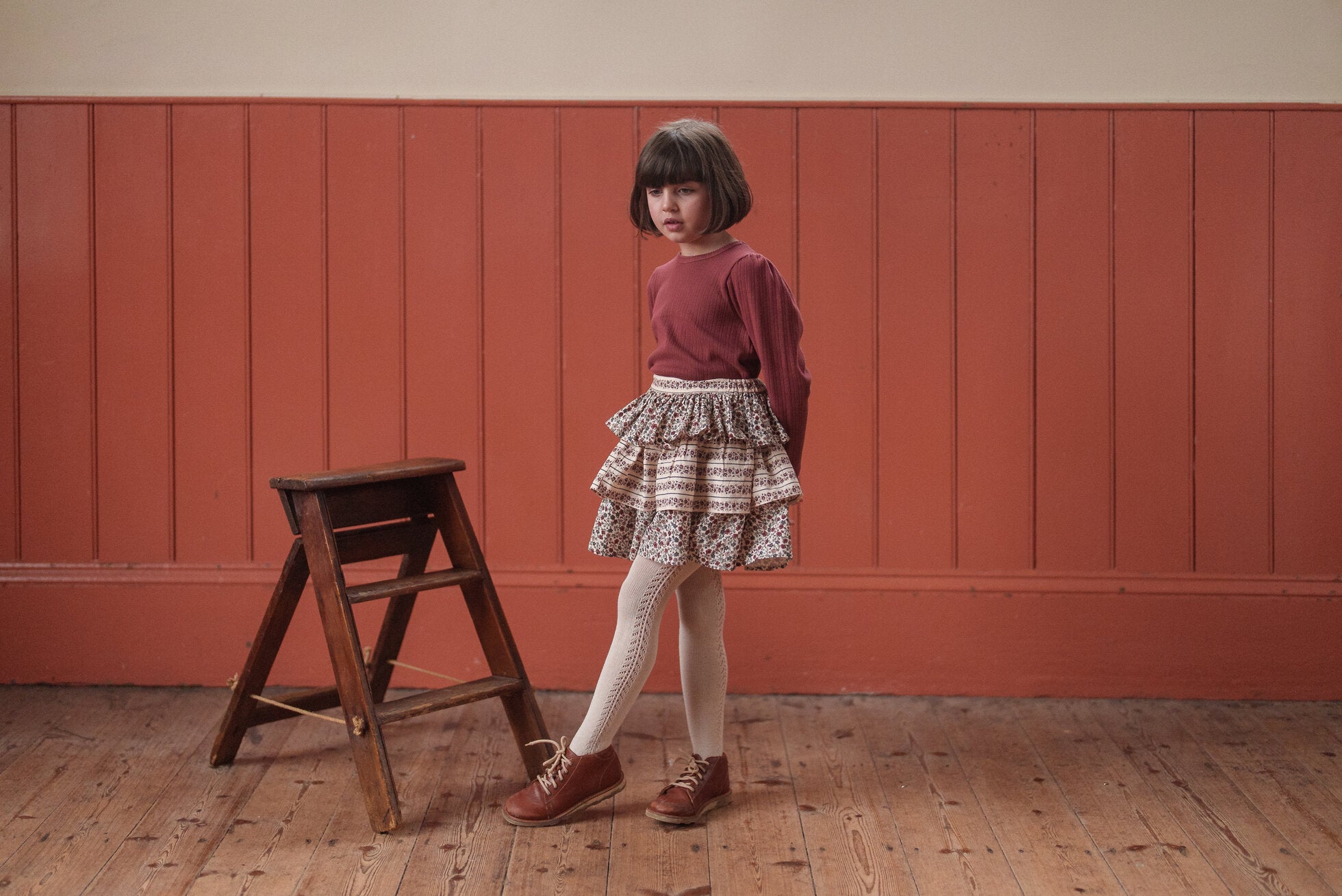 A lovely, simple and comfortable everyday t-shirt. Made from soft, organic, pointelle jersey fabric. Perfect with Little Cotton Clothes bloomers, pants, or skirts. Smaller sizes have a press-stud neck opening.