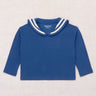 | A boxy, vintage-style long-sleeved top in organic Pima cotton, featuring a bateau sailor collar with contrast appliqué stripe detailing. |