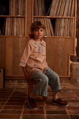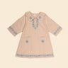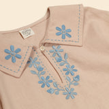 The new style Thalia dress is an easy, pull on style with a relaxed fit. Inspired by ‘70s kaftans, Thalia brings a sweet vintage mood. Crafted in pink beige rustic cotton-linen with contrast naive floral embroideries, patch pockets and keyhole fastening at front. We love Thalia paired with socks and boat shoes for modern, casual styling.