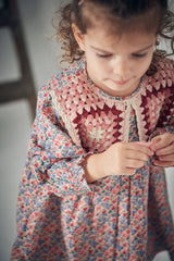 A beautiful fall floral dress featuring a statement crochet collar, this is one of our favorite styles from Louise Misha. 100% cotton twill.